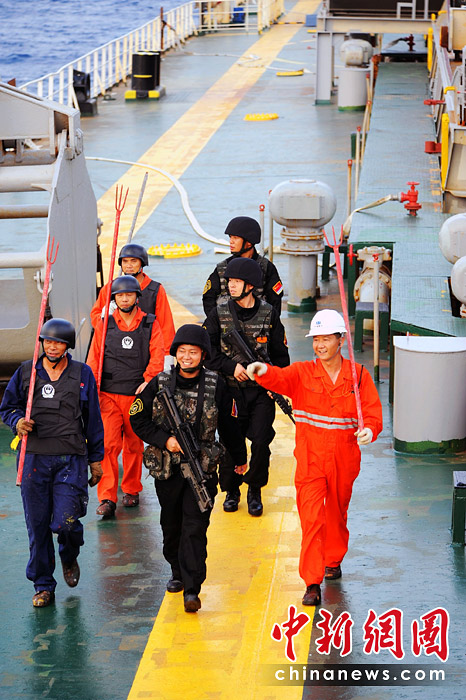 與特戰隊員一起巡邏,船員們輕松了許多。江山 攝