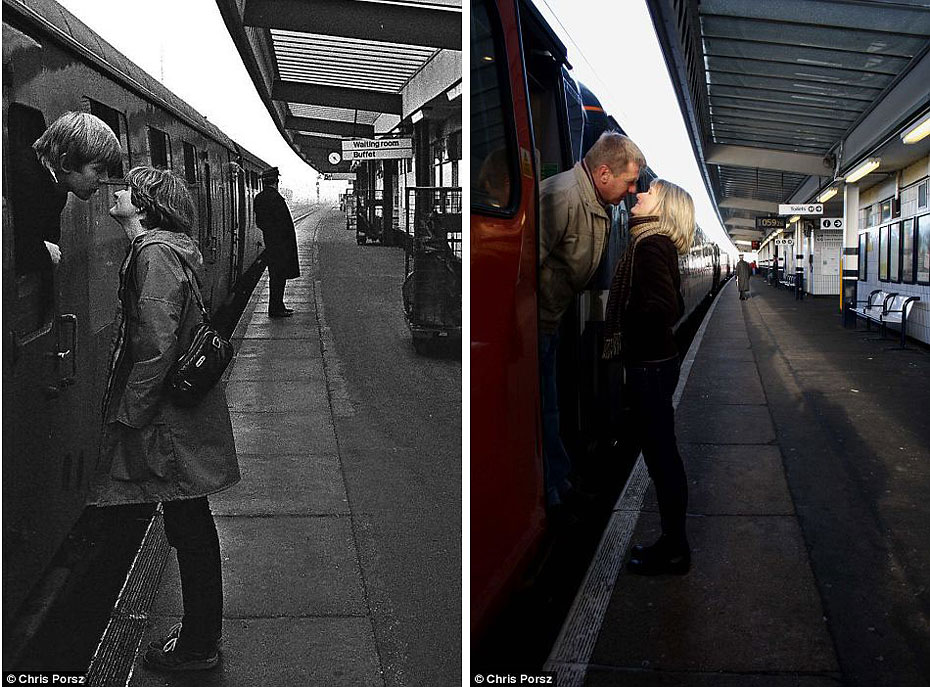 1980年,還是異地情侶的托尼和薩利在火車站依依惜別。如今已經(jīng)共育兩個子女的這對老夫老妻在攝影師安排下重溫那段熱戀時期的情懷。