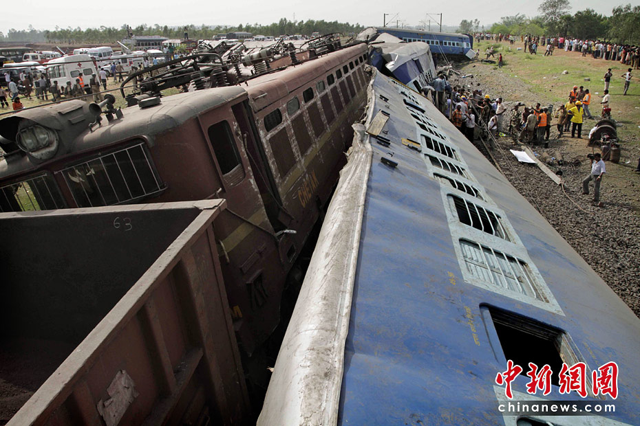 當地時間5月28日,印度一列特快列車在東部西孟加拉邦的西米德納布爾遭反政府武裝襲擊脫軌,造成百余人死傷。圖片來源:中國新聞網