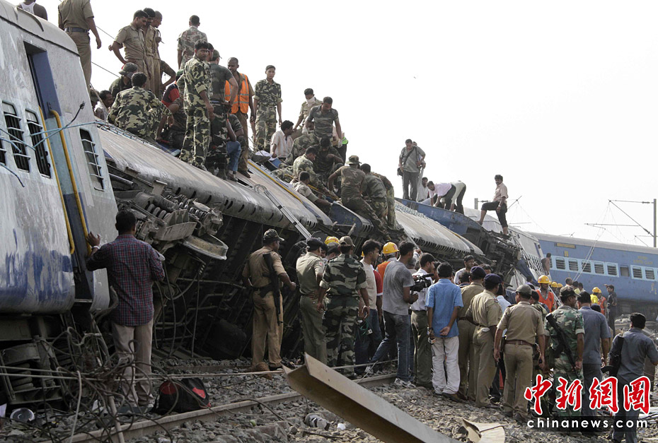 當地時間5月28日,印度一列特快列車在東部西孟加拉邦的西米德納布爾遭反政府武裝襲擊脫軌,造成百余人死傷。圖片來源:中國新聞網
