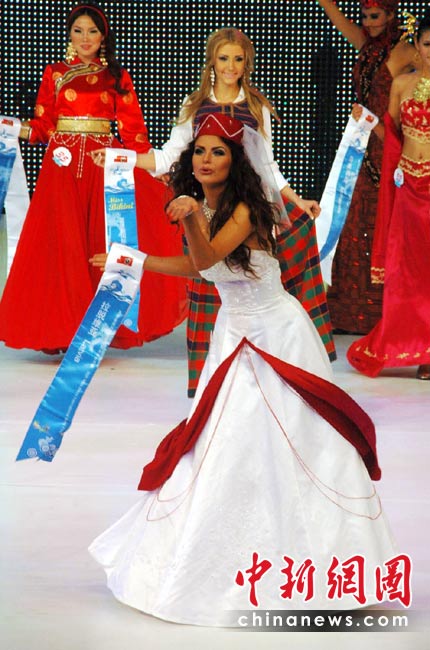 5月29日晚,第35屆國際比基尼小姐全球總決賽在三亞“美麗之冠”落下帷幕,22歲的羅馬尼亞選手Diana Irina Boanca摘得冠軍。總決賽還評選出了四季小姐,18歲的中國選手趙茜獲得“秋季小姐”,澳大利亞、委內瑞拉和拉脫維亞選手分別獲得春、夏、冬季小姐。共有來自世界各地的64位佳麗參加了總決賽的角逐。當晚,佳麗們展示了各自國家或地區特色的民族服飾,用不同的方式展示了不同風格的比基尼“秀”,性感迷人。 中新社記者 尹海明攝
