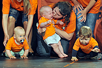 當地時間5月31日,烏克蘭基輔舉行了寶寶爬行大賽。數十名嬰兒在母親的鼓勵下奮力向4米外的終點爬去。圖片來源:中國新聞網