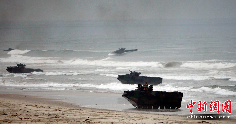 當地時間6月4日,約5000名水兵和陸戰隊員在美國加利福尼亞州舉行了代號為“黎明突擊”的搶灘登陸軍事演習。圖片來源:中國新聞網