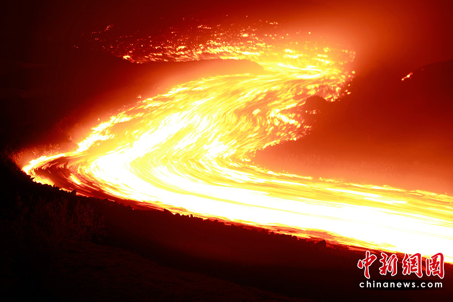 當地時間6月4日,危地馬拉帕卡亞火山噴發(fā),涌出大量熔巖,迫使周邊數千居民緊急疏散。圖片來源:中國新聞網