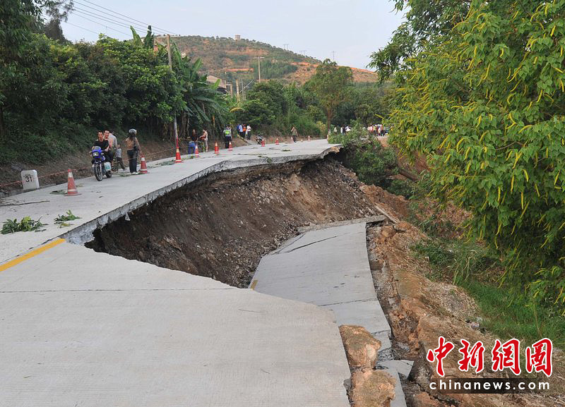 6月8日下午4點(diǎn)半,福建閩侯白沙鎮(zhèn)115縣道31公里處路面發(fā)生塌陷,路面整體下陷20多米,路基裂痕長(zhǎng)達(dá)百米,所幸無(wú)人傷亡。圖片來(lái)源:CFP