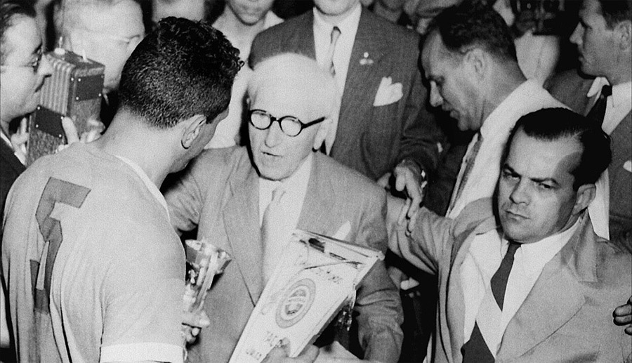 在與1938年法國(guó)世界杯時(shí)隔12年后,世界杯在里約熱內(nèi)盧的馬拉卡納體育場(chǎng)和巴西其他城市再度舉行。世界杯在新的時(shí)代重新獲得新生。戰(zhàn)后國(guó)際足聯(lián)第一次大會(huì)于1946年7月25日在盧森堡舉行,國(guó)際足聯(lián)雷米特先生在戰(zhàn)爭(zhēng)期間為使足球精神不滅而鞠躬盡瘁。為了向他表示敬意,國(guó)際足聯(lián)世界杯被命名為“雷米特杯”,英國(guó)重新返回足球大家庭,巴西因在1938年世界杯上表現(xiàn)出色,從而獲得主辦權(quán)。