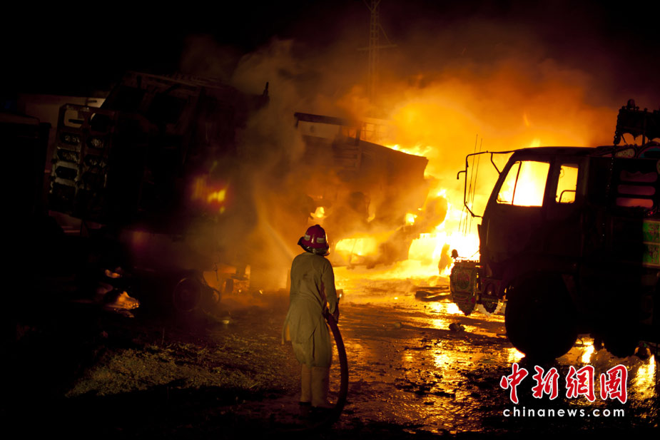 北約車隊(duì)在巴基斯坦遇襲 十多輛車被燒