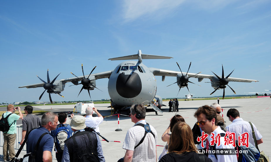 6月8日,德國柏林,一架空中客車A400M軍用運輸機(jī)在2010年柏林國際航空展上試飛。