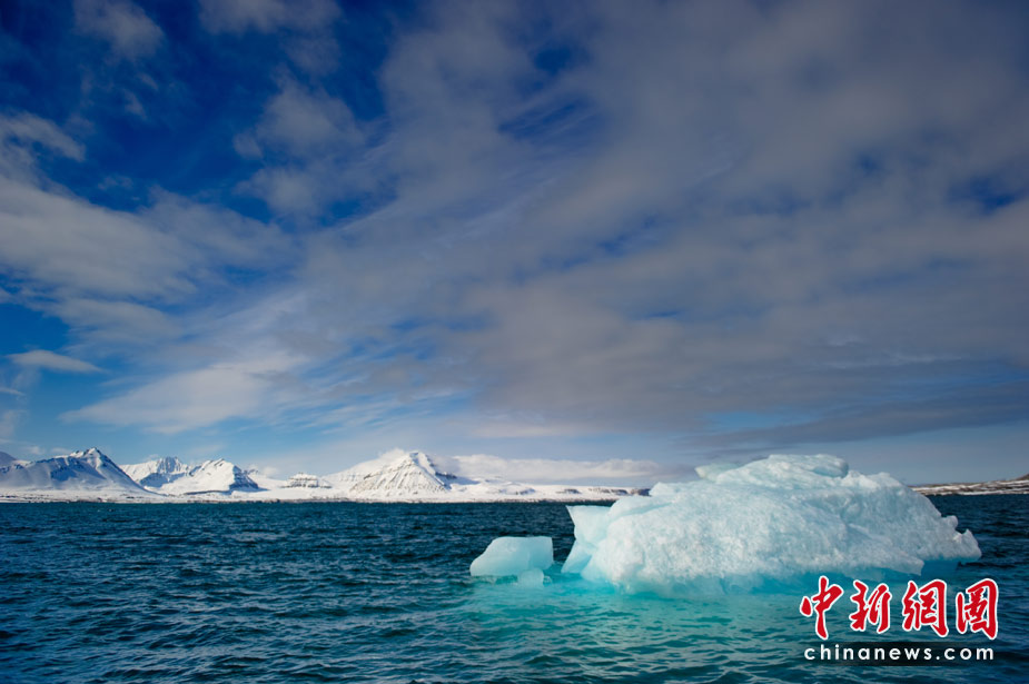 挪威的新奧勒松建有多個國家的北極考察站。圖為6月5日拍攝的挪威新奧勒松海岸的冰山。