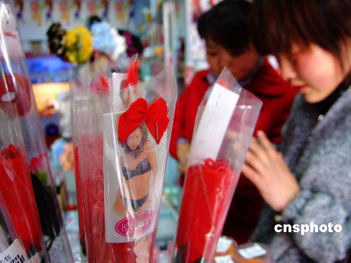 圖:“內(nèi)衣版”玫瑰花走俏情人節(jié)
