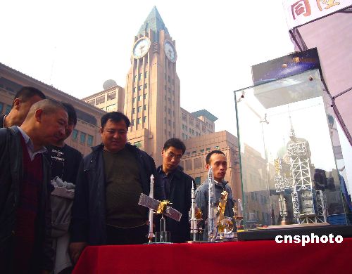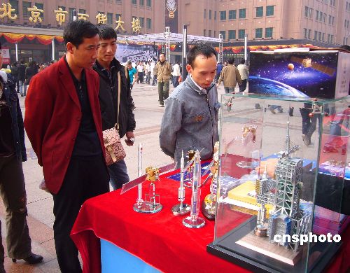 10月25日,漂亮逼真的“嫦娥一號”模型在北京王府井大街亮相,吸引了過往行人的目光。中新社發 玉龍 攝