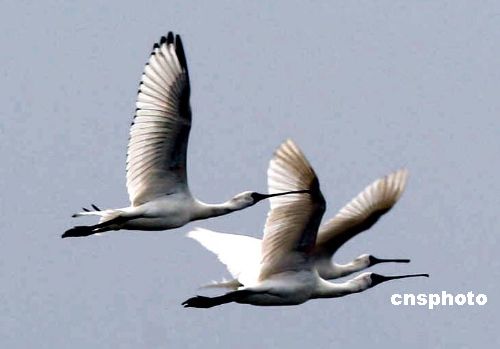 圖:大批黑臉琵鷺福建越冬