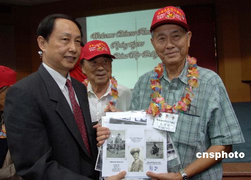 “2007美國華裔飛虎隊老兵及家眷回鄉訪問團”11月15日抵粵參觀訪問。訪問團將在廣州、江門、新會、臺山等地進行省親活動,并向廣東華僑博物館等廣東省三家博物館單位捐贈華裔飛虎隊老兵文物,八十三歲的老兵阮福志向省華僑博物館捐贈珍貴的歷史照片。中新社發 梁永強 攝