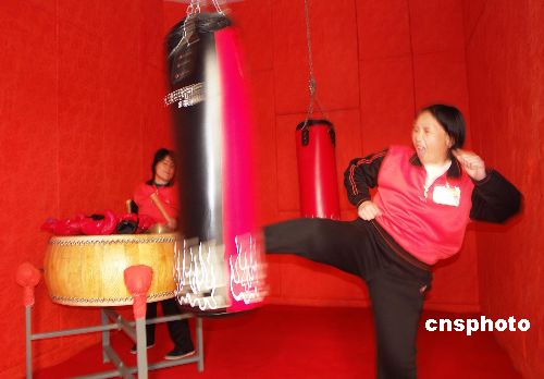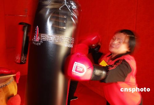 2007年11月14日,勞教人員在河南省女子勞教所的宣泄室內(nèi)用力擊打沙袋,宣泄心中的苦惱。宣泄室是該所勞教人員心理矯治中心新開(kāi)設(shè)的心理治療項(xiàng)目,室內(nèi)的墻壁都用厚厚的海棉包裹,并配備了沙袋、鑼鼓等供勞教人員使用,針對(duì)一些內(nèi)向的學(xué)員,起到了很好地的心理治療作用。據(jù)介紹,宣泄室只是心理治療的一個(gè)環(huán)節(jié),只有與其他的心理矯治手段相配合才能真正緩解勞教人員的心理壓力,樹(shù)立起重樹(shù)新生的信心。中新社發(fā) 馬健 攝