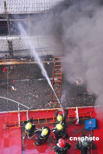 11月20日上午10時許,安徽蚌埠市區最大的小商品批發市場——太平街批發市場2號營業大廳發生火災,一層大廳2000平方米的近百攤位全部陷入火海中。一個多小時后,火勢又蔓延到二樓倉儲區。截至下午4時,余火仍在撲救中。目前沒有人員傷亡報告,經營戶貨品財物損失很大。 中新社發 安徽張建平 攝