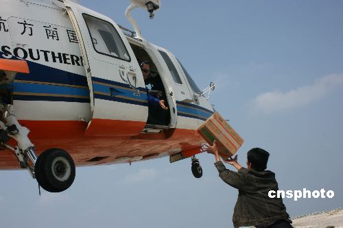 圖為救助飛機在西沙向被困漁民空投食物。中新社發 張鑫華 攝