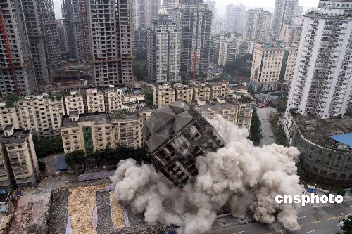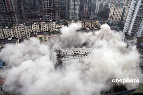圖:重慶鬧市爆破拆除最高爛尾樓