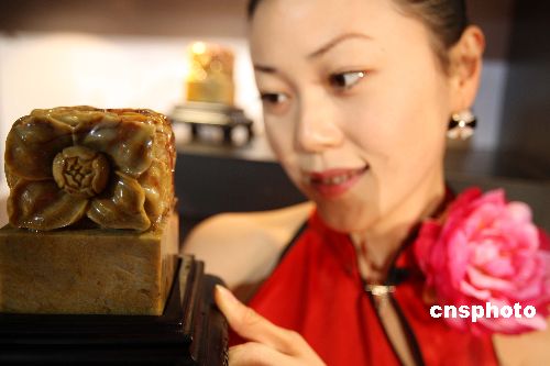 壽山石奧運特許商品“中國牡丹印”亮相