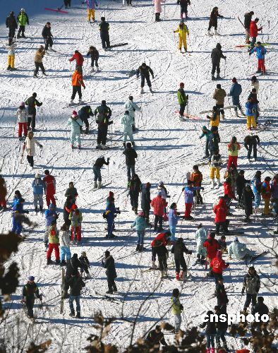 12月31日,北京市民在北京懷北國際劃雪場劃雪玩耍。當天是2007年最后一天,許多北京市民來到京郊劃雪場感受劃雪魅力,迎接新年到來。中新社發 卜向東 攝