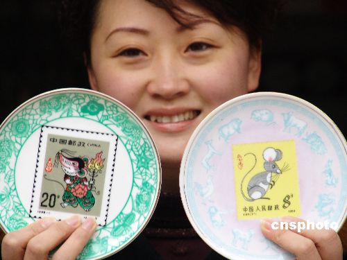 圖:生肖鼠郵票瓷盤景德鎮上市