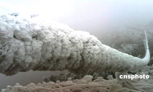 中國廣西最近遭遇嚴重雨雪冰凍災(zāi)害,電力、通訊設(shè)施受到嚴重影響,圖為中國移動廣西公司在柳州市融安縣一個超負荷的移動光纜被冰雪凍結(jié)。中國移動廣西公司已啟動最高等級應(yīng)急通信方案,全力保障通信網(wǎng)絡(luò)暢通,向重災(zāi)區(qū)提供信息發(fā)布綠色通道和延遲停機等服務(wù),為抗災(zāi)救災(zāi)提供通信保障。中新社發(fā) 申蓓 攝