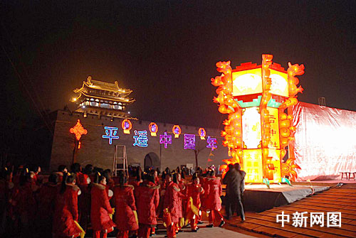 節(jié)日里的平遙古城流光溢彩,燈彩迷人,各色燈組為當?shù)鼐用窈椭型庥慰蛶砹藦娏业囊曈X沖擊和心靈震撼。裴旭亮 攝