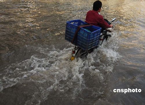 2月27日下午,廈門廈禾路一處工地的工人在作業中不慎將地下自來水管挖斷,大量地下水涌出地面,導致附近路段水流成河。中新社發 柳濤 攝
