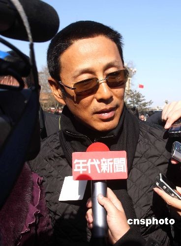 3月3日,全國政協十一屆一次會議在北京人民大會堂開幕,政協委員陳道明出席開幕會前接受媒體記者采訪。中新社發 張宇 攝