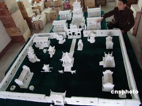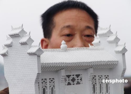 3月8日,江西省景德鎮(zhèn)羅冬根展示作品瓷器群雕《大觀園》。景德鎮(zhèn)陶藝家羅冬根用6年的時(shí)間,制作出面積達(dá)80平方米,主件有300多件的瓷器群雕作品《大觀園》。這部作品由建筑、園林、山水、民俗等部分組成,采用高白泥澀胎瓷制成,取題于《紅樓夢》大觀園,取材于蘇州園林和江南徽派建筑。中新社發(fā) 石衛(wèi)明 攝
