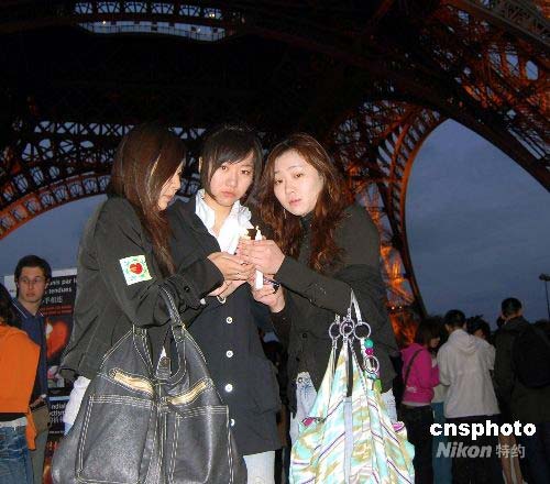 五月十八日晚,旅法華僑華人和中國留學生在巴黎埃菲爾鐵塔下舉行燭光祈福會,以表達對四川汶川大地震遇難同胞的哀思和對生者的祝福。中新社發 吳衛中 攝