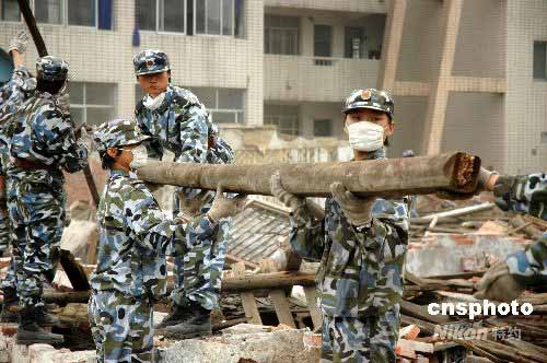 圖:中國女海軍陸戰(zhàn)隊(duì)員四川災(zāi)區(qū)清理廢墟