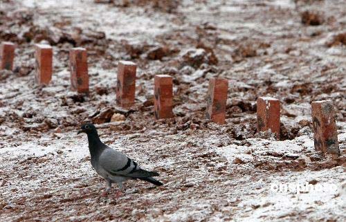 5月22日上午,一只灰鴿從遠(yuǎn)處飛來(lái),落在四川省什邡市洛水鎮(zhèn)李冰村西北的山坡上,這里埋葬了108名“5.12”地震遇難者,他們的墓碑用磚代替,墓碑上沒(méi)有名字,上面只有一個(gè)數(shù)字編號(hào)。 灰鴿久久佇立在這片灑滿石灰粉的墓地,良久后,它沿著第二排磚碑向南緩緩踱去,頭頸轉(zhuǎn)向墓碑……走到盡頭,然后它又側(cè)身轉(zhuǎn)向第一排磚碑,良久……當(dāng)記者慢慢地輕輕接近它時(shí),它并沒(méi)有飛起,微微地昂起頭,少頃,“咕咕”地叫幾聲,回望了一眼墓地,飛走了……中新社發(fā) 張曉理 攝