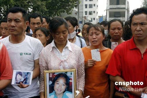 六月一日,四川都江堰聚源中學遇難學生家長在廢墟前給孩子過六一。當日,都江堰聚源中學倒塌廢墟上擺滿花圈和祭品,很多學生家長和當地居民在六一兒童節這天祭奠不幸遇難的孩子。據都江堰市政府公布的數字,地震造成都江堰聚源鎮的聚源中學及向峨鄉的向峨學校共約千名學生死亡,四百多人受傷。中新社發 慎重 攝