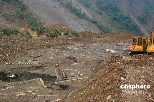 備受矚目的唐家山堰塞湖于7日零點達到泄流水位高程740米,但是否如期泄流尚不得知。圖為6月6日下午的唐家山堰塞湖泄流槽,水面上堆滿了各種漂浮物。中新社發 劉建 攝