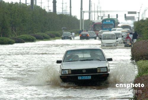 6月10日,車輛在水中艱難行進(jìn)。連日暴雨,導(dǎo)致南昌城區(qū)多處發(fā)生內(nèi)澇,給市民出行帶來許多不便。6月8日至10日江西省出現(xiàn)持續(xù)強(qiáng)降雨,主要集中在浙贛線以北的景德鎮(zhèn)、上饒、宜春、南昌、萍鄉(xiāng)等地。據(jù)江西省水文部門監(jiān)測(cè),截至10日8時(shí),江西降雨超50毫米的有60個(gè)縣235個(gè)水文站,超100毫米的有35個(gè)縣125個(gè)水文站。浮梁、婺源、萬載、袁州4個(gè)縣區(qū)10個(gè)站降雨超過200毫米。中新社發(fā) 朱文標(biāo) 攝