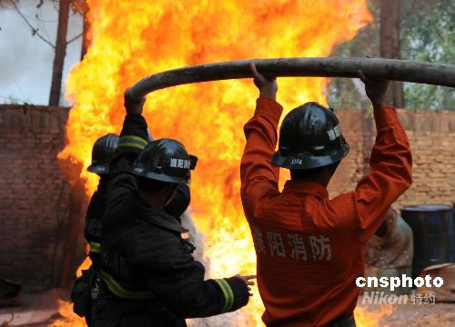 圖:非法小煉油作坊失火 濮陽消防成功處置