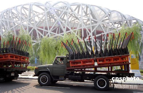 焰火禮炮專用車開到"鳥巢"迎接殘奧會閉幕式