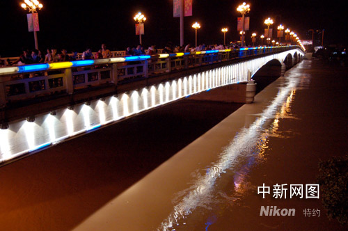 9月29日晚上,廣西南寧眾多市民和游客爭睹8年來邕江最大洪水。受今年第14號臺風(fēng)“黑格比”的影響,最近幾天廣西江河水位不斷上漲,9月30日凌晨4時,邕江8年以來最大洪峰通過南寧,最大洪峰水位達(dá)到75.89米,超出警戒水位2.89米,沿江兩岸大堤下許多樹木和路燈被淹沒。由于8年前南寧修筑了高規(guī)格的防洪大堤,因此此次洪峰對南寧主城區(qū)沒有影響,但對下游邕寧區(qū)造成嚴(yán)重影響。目前,邕江水位開始緩慢回落。由于洪水適逢國慶假期,許多市民和游客到江邊爭睹滔滔江水。中新社記者 劉萬強 攝