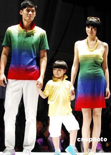 10月22日晚,2009春夏中國T恤流行趨勢發布暨“天然杯”第六屆國際T恤設計大賽作品展在上海舉行,該大賽吸引來自韓國漢陽大學、ESMOD國際服裝學院、萊弗士服裝學院等近百所高校的近3000幅作品。圖為模特展示院校T恤設計優秀作品。中新社發 錢興強 攝