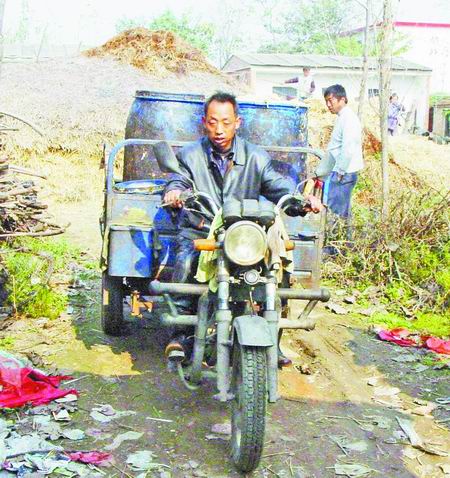 “在這兒租房,是因為離市區(qū)近!鼻衽d錘低著頭說。43歲的邱興錘,泌陽縣賒灣鄉(xiāng)人。據(jù)他說,他把市區(qū)餐館的泔水拉回來,倒進(jìn)大鍋里,煮沸后用勺子撇出上面的浮油,冷卻后就是泔水油;他常到火鍋店拉泔水,每天天不亮和中午去拉兩趟。自去年7月底以來,提煉的泔水油有1萬多公斤。