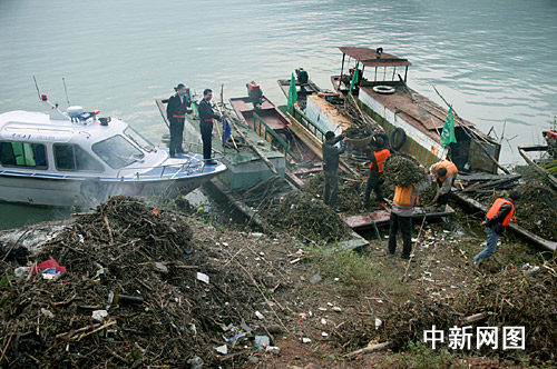 三峽巴東水域垃圾帶。