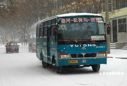 11月15日,受強冷空氣的影響,黑龍江省出現一次降雪和降溫,其中黑河、伊春、綏化北部有中到大雪,哈爾濱東北部、鶴崗有小到中雪,其它地區為小雪天氣。黑龍江省氣象臺繼續發布道路結冰黃色預警信號。中新社發 邱齊龍 攝