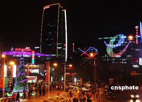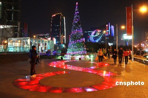 11月23日晚,北京市民在中關(guān)村廣場(chǎng)感受濃厚的節(jié)日氣氛。圣誕節(jié)前夕,巨型圣誕樹打造“流光溢彩”中關(guān)e世界,迎接“購(gòu)物季”的到來(lái),一場(chǎng)圣誕商戰(zhàn)正在悄然打響。中新社發(fā) 鄭雄增 攝