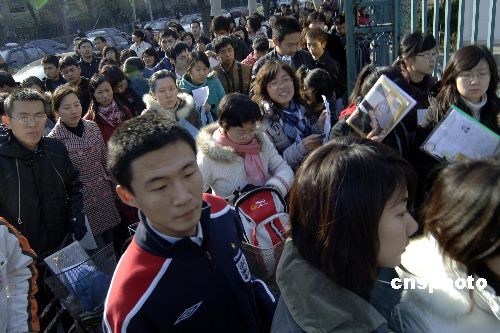 11月30日,2009年國家公務員考試正式開考,全國共計報名人數775418人,比去年增加13余萬人,考試錄取率約1.75%。金融危機、畢業生逐年增多等就業壓力導致公務員報考高“熱”不退,因此又被稱為“中國競爭最激烈考試”。圖為北京考場外考生準備入場筆試。中新社發 徐曦弋 攝
