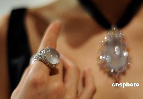 十二月初,某珠寶品牌在北京推出頂級翡翠珠寶展。展示的首飾均由翡翠制成,價格從幾十萬元到數百萬元人民幣不等。中新社發 廖攀 攝