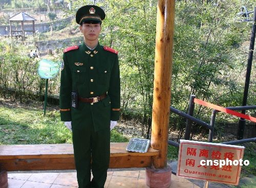 12月11日,在贈臺大熊貓“團團”、“圓圓”即將離開娘家飛赴寶島臺灣時,海峽兩岸30多家媒體記者專程趕到雅安碧峰峽基地集中探營!皥F團”“圓圓”目前仍在隔離檢疫期內,每天有武警全天候執勤。中新社發 霍潺 攝