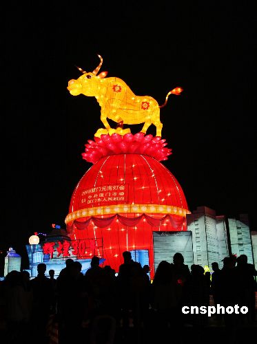 2009年1月28日,廈門元宵燈會在白鷺洲西公園璀璨亮燈,80組傳統工藝與現代科技完美結合的彩燈燈組齊亮相,讓廈門市民和各地游客充分感受了新年的喜慶與祥和氣氛。據悉,燈會將一直亮燈到2月12日(正月十八)。中新社發 陳地長 攝