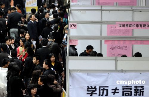 二月三日,福州舉辦春節(jié)后首場(chǎng)針對(duì)大中專畢業(yè)生的招聘會(huì),一展位前掛起了“學(xué)歷不等于高薪”的橫幅。就業(yè)市場(chǎng)中,實(shí)踐經(jīng)驗(yàn)、社會(huì)交際等能力開(kāi)始成為各用人單位考察畢業(yè)生的重要要求。中新社發(fā) 王東明 攝