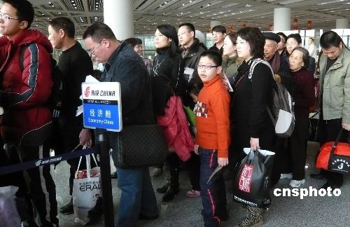 2月4日,中國傳統春節假日已過,元宵佳節將至,北京首都機場返城、探親、旅游的乘客增多,圖為等候登機的乘客。中新社發 錢興強 攝