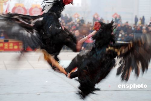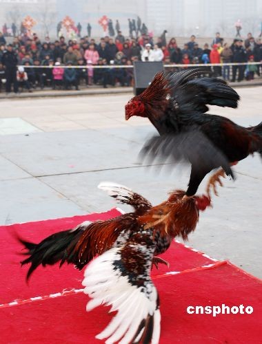 2月7日,元宵節臨近,斗雞大賽在青島鳳凰島民間藝術節舉行,這一流行于古代宮廷的娛樂活動走進民間,引來了眾多市民觀看。中新社發 俞方平 攝